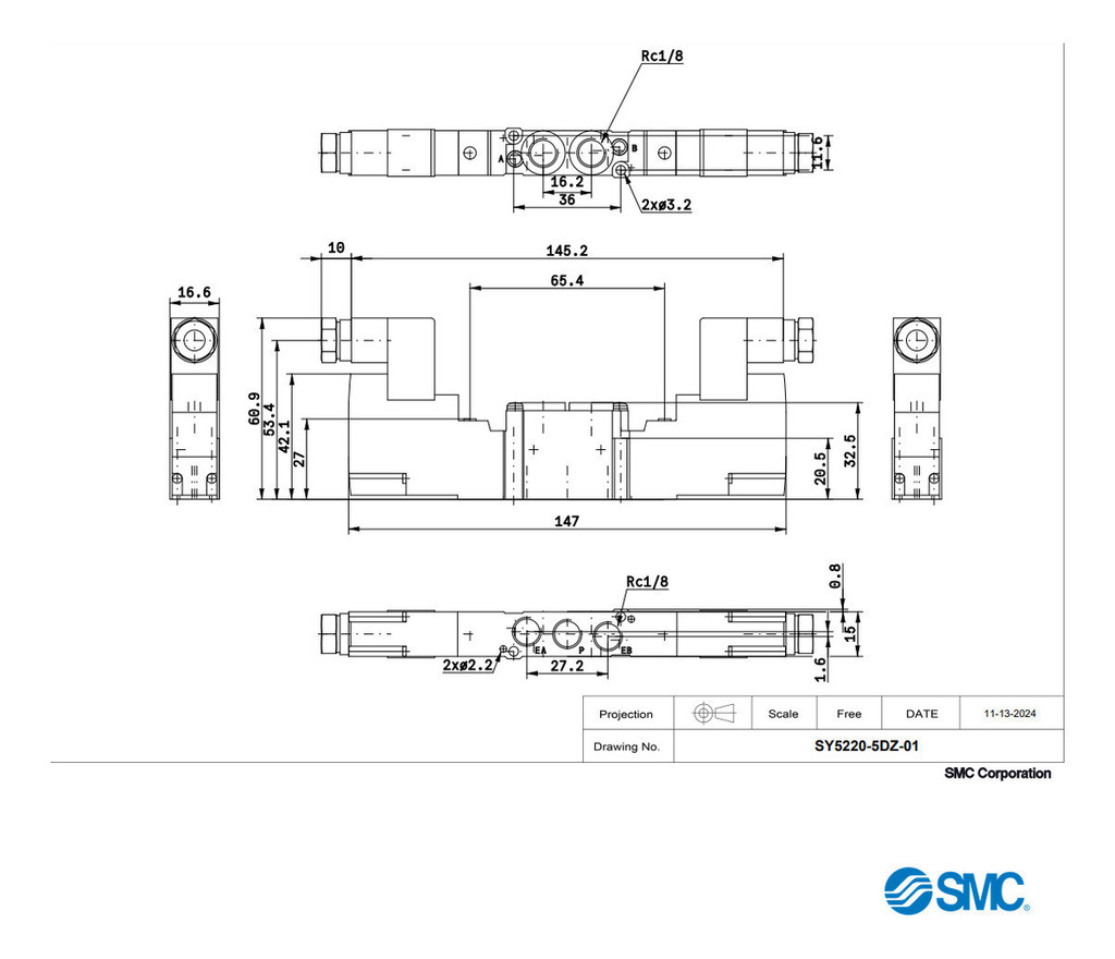Válvula Direcional Solenoide SMC SY5220-5DZ-01